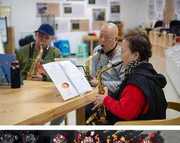 ▲ Residentes de un albergue para personas mayores practican música en un centro comunitario en el distrito de Jiangbei, en…