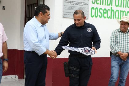 En Villa Juan Aldama, Teapa, el Gobernador hizo entrega de la rehabilitación de la caseta de vigilancia y una patrulla,…