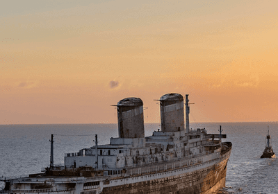 El S.S. United States se encuentra actualmente atracado en un muelle de Mobile Bay, Alabama, donde Mullane y su equipo están…