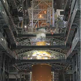 ▲ El cohete Artemis II y la nave espacial Orión en el Centro Espacial Kennedy, en Florida.Foto Afp Eirinet Gómez…