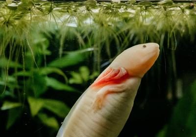 El ajolote es una salamandra rosada de aspecto juvenil con branquias externas en la cabeza que se asemejan al pelo de…