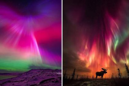 ▲ Auroras boreales una en el Faro de Luces (Asturias); la otra en el parque Tombstone Mountain, Canadá.Foto tomadas de…