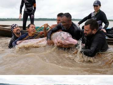 ▲ En dos imágenes del año de Ap, científicos y veterinarios colombianos realizan complejas maniobras para capturar y analizar a…