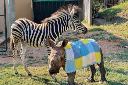 Ya sea jugando con la pelota, persiguiéndose y corriendo, o acurrucándose juntas por la noche, Daisy, la cría de rinoceronte blanco, y Modjadji, la cebra de…